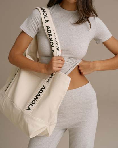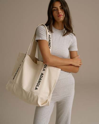 Your weekend getaway tote is has arrived. Perfect for carrying your holiday essentials. Easily folds flat, great for travelling with. Detailed with the Adanola logo on the strap in black.