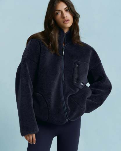 This season's must-have piece. A cosy choice this Autumn. Featuring recycled fleece with a suede feel lining, branded zip and dropped shoulders. Wear yours with the Ultimate Leggings to channel a retro sport look.
