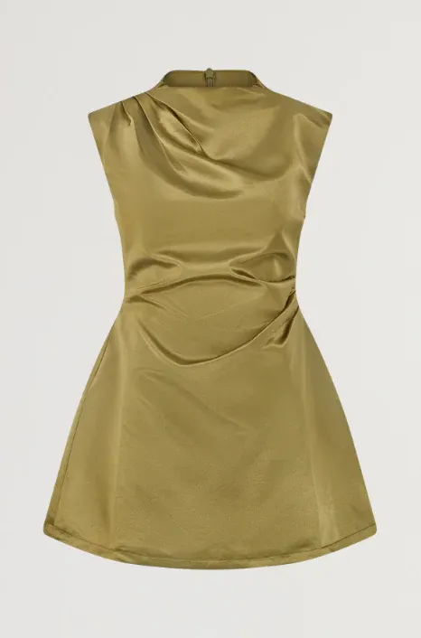 Meet your new statement piece—our Satin Olive Green Mini Dress, designed for nights when you want effortless luxury. Crafted from silky satin with a subtle sheen, this mini dress drapes beautifully on the body, giving you a smooth, elegant silhouette with a touch of modern edge.