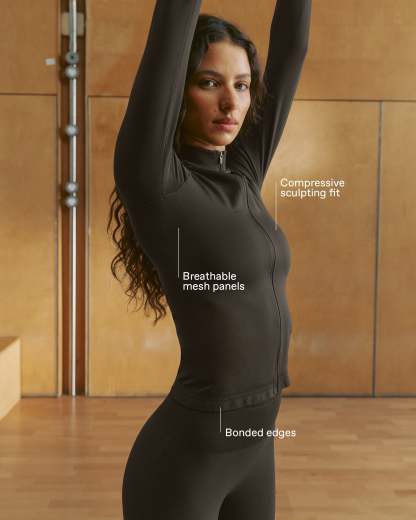 Meet our new seamless activewear fabric designed to support you through heavier workouts. Crafted from a soft, lightweight composition. This sweat-wicking fabric keeps you cool and comfortable with breathable compression that hugs your body like a second skin. This new fabric provides support through every rep and set, adapting effortlessly to every motion. The Seamless Zip Up Top features engineered breathable panels, bonded edges and tonal branding. Style yours with the matching shorts for a complete look. Get ready to move with Seamless.