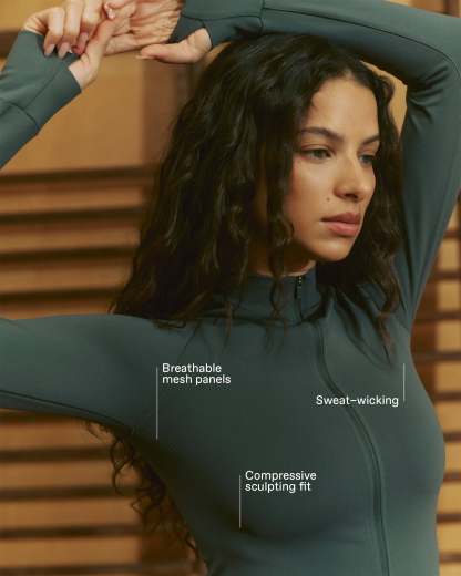 Seamless Zip Up Top - Sea Green