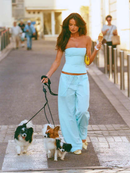 Matchingset Sku :BF0AAB-002B - Sky Blue Wide-Leg Lounge Pants
