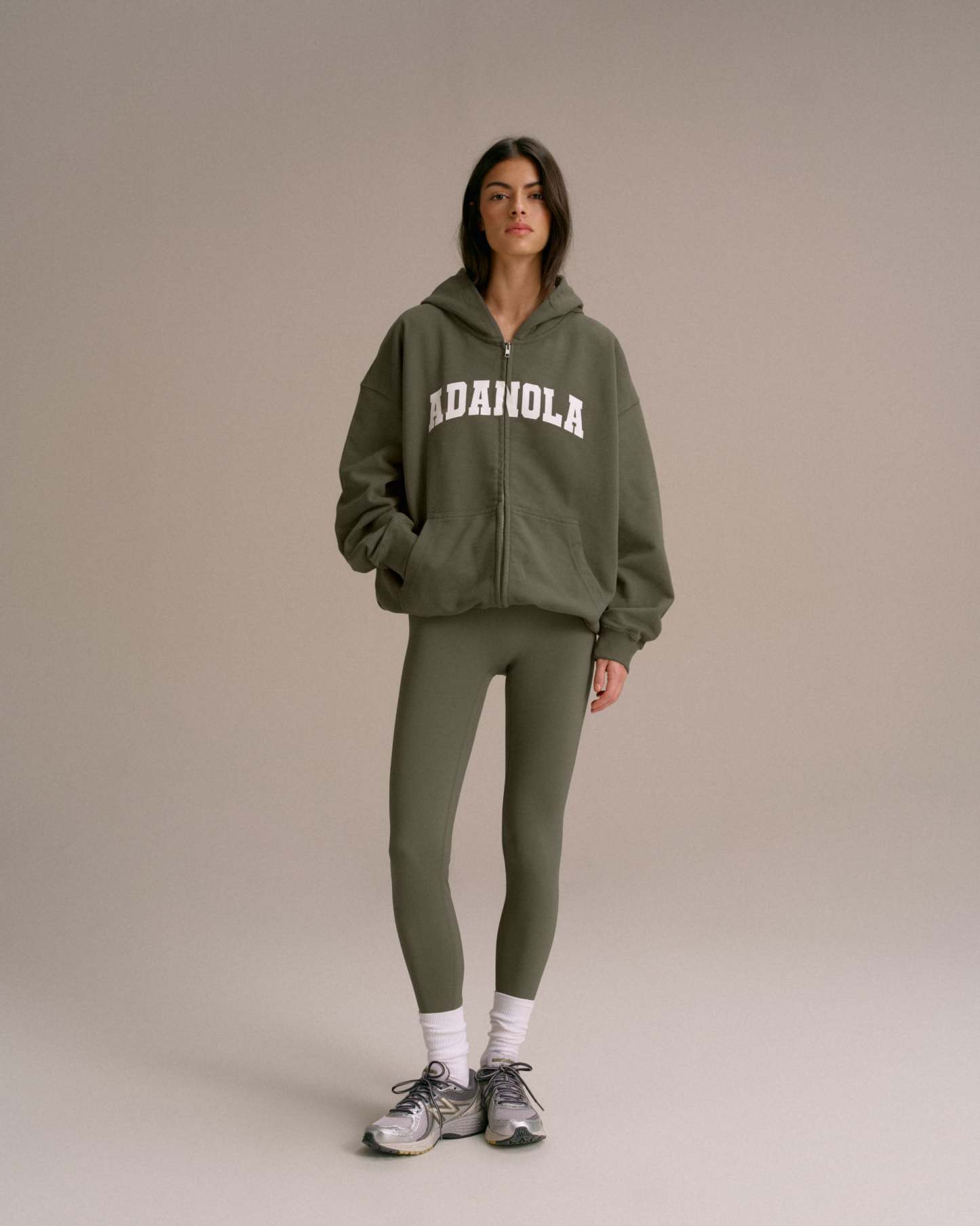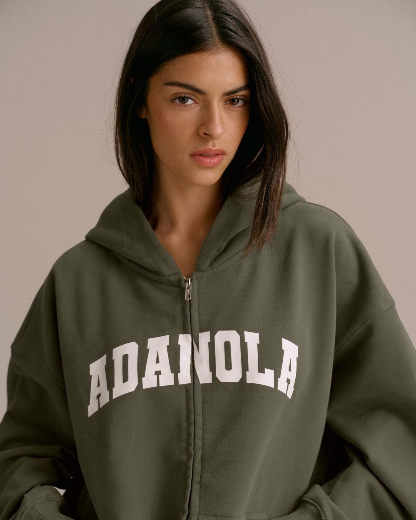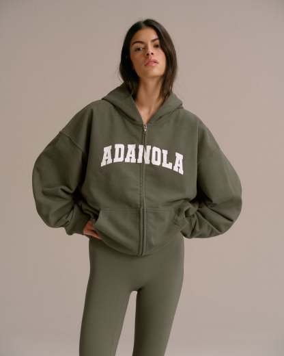 Varsity Oversized Full Zip Hoodie - Olive Green/Marshmallow White