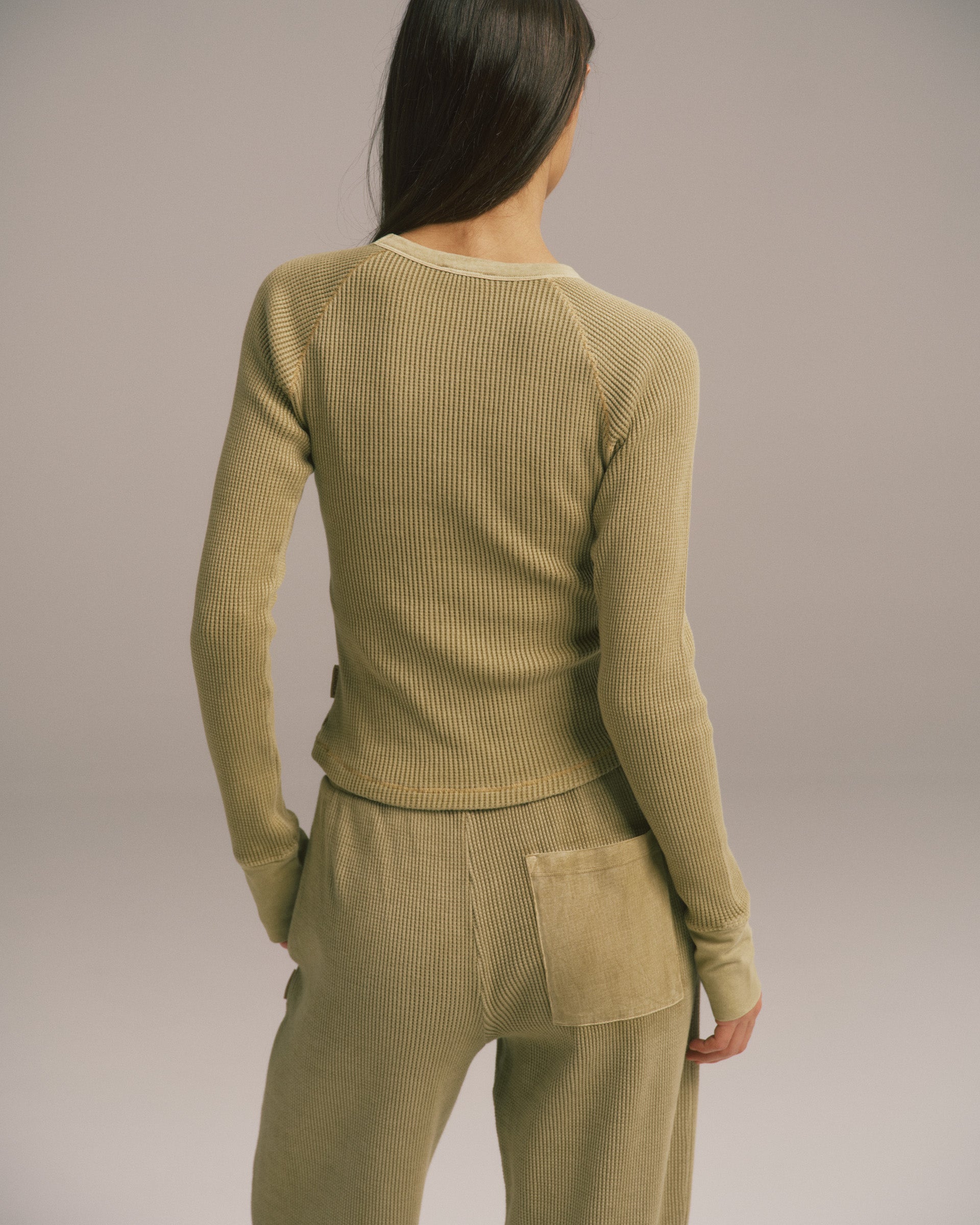 Our new Waffle Raglan Long Sleeve Top is our go-to for laid back days or as a layering piece. It has a relaxed silhouette and is made from a light breathable fabric composition. Style yours with the matching pants for a complete look.